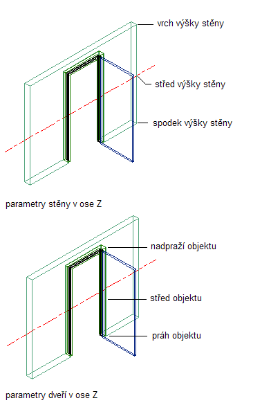 | měřit k vrchu dveří | vyberte možnost Nadpraží (Vrch) objektu pro položku K. |