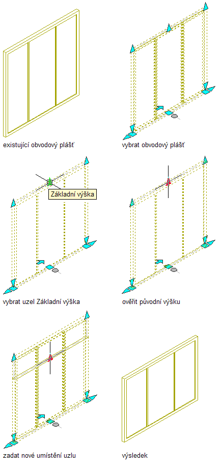 Poznámka: Když posunete uzel, zobrazí se hodnota původní základní výšky vedle nové základní výšky a rozdílu obou hodnot.