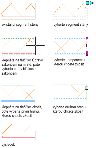 Tento postup slouží ke změně zakončení stěny pomocí zkosení rohu komponenty stěny.