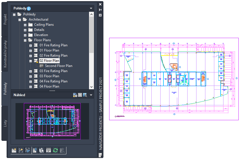 Tento postup slouží k otevření a zavření výkresu pohledu.