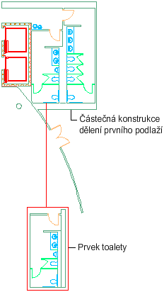 Stejný prvek je možné umístit v různých úrovních a děleních. Pokud vytvoříte rozvržení koupelny jako prvek, můžete je použít ve druhém podlaží západního křídla stejně jako v prvním podlaží východního křídla. Chcete-li prvek umístit do konkrétního podlaží a křídla, je nutné na něj uvést referenci v konstrukčním prvku. Můžete například vytvořit prvek s názvem Obecné rozvržení koupelny a uvést na něj referenci v konstrukčních prvcích s názvy První podlaží – levý byt, První podlaží – prostřední byt, První podlaží – pravý byt, atd.
