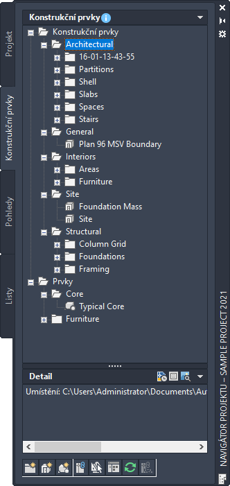 Kategorie konstrukčního prvku v Navigátoru projektu