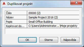 - V dialogovém okně Duplikovat projekt zadejte číslo nového projektu.