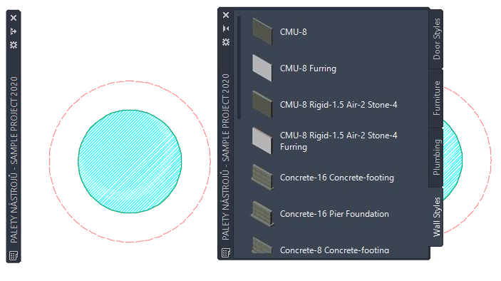 Tento postup slouží ke skrytí sady palet nástrojů, pokud se nepoužívá. Sada palet nástrojů se skryje, jestliže přemístíte kurzor směrem od ní a ponecháte viditelné pouze záhlaví. Jestliže najedete kurzorem na záhlaví, sada palet nástrojů se opět zobrazí.