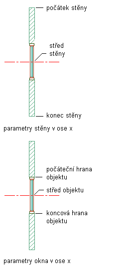 Pozice okna podél parametrů osy X