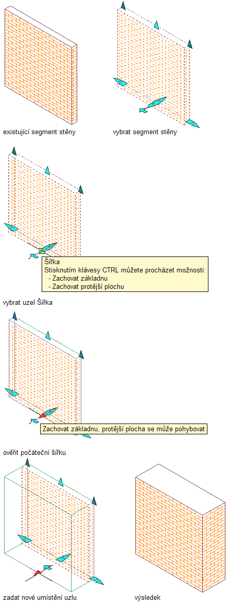 Chcete-li změnit šířku stěny pomocí uzlů při zachování protilehlé plochy stěny