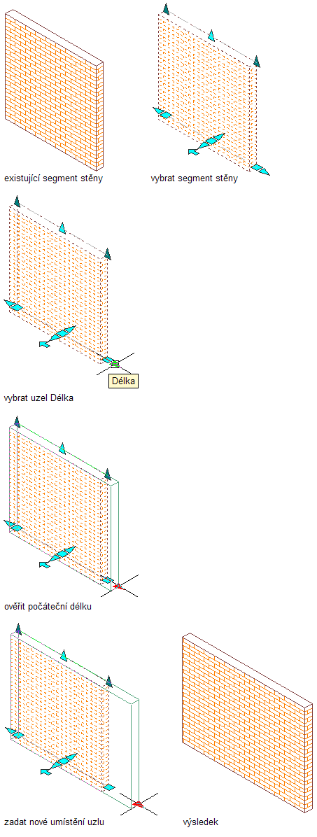Chcete-li změnit délku stěny pomocí uzlů