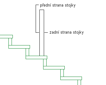Určete orientaci stojky vzhledem k vertikálnímu směru u schodiště v nárysu, jak je znázorněno na následujícím obrázku: