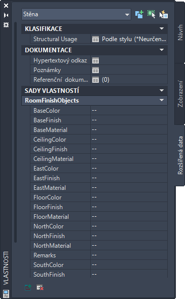 Poznámka: Výpis definice sady vlastností na kartě Rozšířená data se dá ovládat pomocí možností v rozevíracím seznamu Přepsání vlastnosti na kartě Nastavení objektu AEC v dialogu Možnosti.