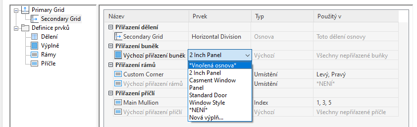 - Vyberte styl sestavy dveře/okno.