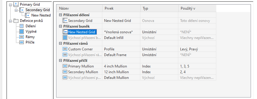 - Ve sloupci Prvek vyberte položku Vnořená osnova.