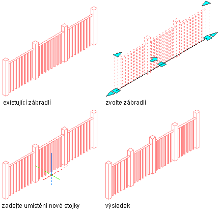 Tento postup slouží k přidání stojky k zábradlí. Stojka je umístěna ve vybraném bodě na zábradlí.