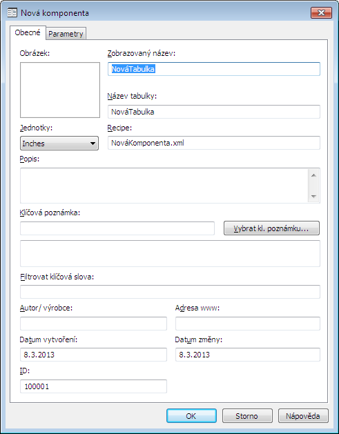 Zobrazí se dialogové okno Nová komponenta.
