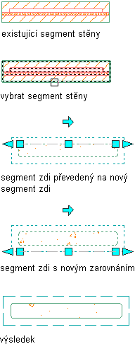 Použití odlišného nástroje stěny a nové vlastnosti na existující segment stěny