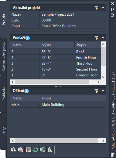 Karta Projekt v Navigátoru projektu je místo, kde se zadávají informace týkající se celého projektu.