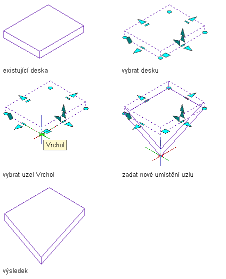 Tento postup slouží ke změně velikosti nebo tvaru desky či střešní desky přesunutím jednoho nebo více vrcholů.