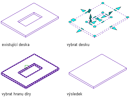 Tento postup použijte, chcete-li z desky/střešní desky odstranit otvor.