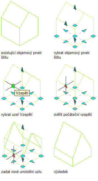 Tímto postupem změníte výšku stěn objemového prvku štítu pomocí uzlů.