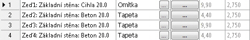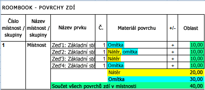 | Povrchy stěn v místnosti |