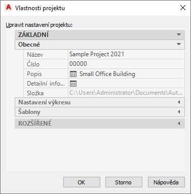 Poznámka: V části Nastavení výkresu můžete určit, že číslo projektu se přidá jako předpona ke každému výkresu projektu, který se v projektu vytvoří. Jestliže změníte číslo projektu v průběhu projektu, změní se existující názvy souborů včetně jejich cest.