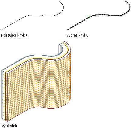 Je možné například vytvářet čárové diagramy nebo náčrty stěn pomocí úseček, oblouků, kružnic a křivek za účelem vytvoření exteriérů budovy a místností, a konvertovat tyto objekty na stěny. Po vytvoření stěny je možné upravit vlastnosti stěny.