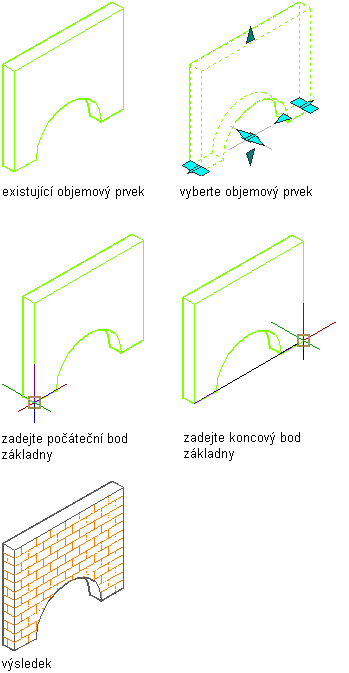 Převeďte 3D objekt, například objemový prvek nebo těleso aplikace AutoCAD ACIS, na stěnu s jednou komponentou.