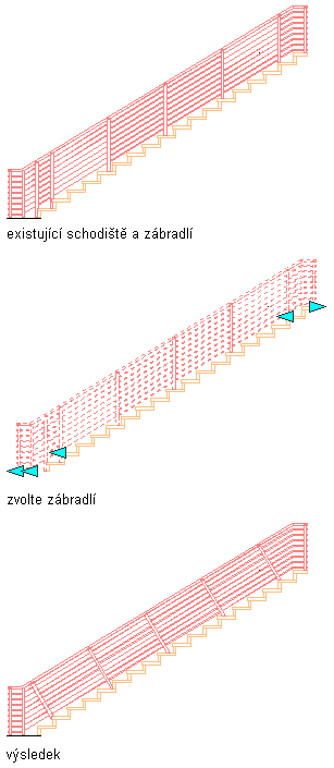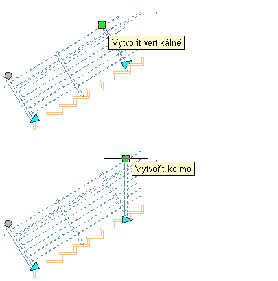 Pomocí tohoto postupu určíte kolmou nebo vertikální orientaci zábradlí vzhledem k rameni schodiště. Ve výchozím nastavení má zábradlí při vytvoření vertikální orientaci.