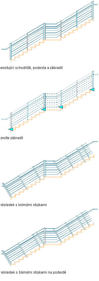 Pokud má schodiště podestu, můžete určit také orientaci stojek podesty.