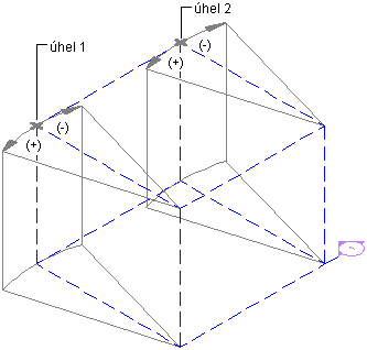 Tento postup použijte ke změně úhlu stran hranice řezu budovy. Kóty úhlů můžete změnit před nebo po vytvoření připojeného řezu. Jestliže změníte úhly po vytvoření řezu, musíte aktualizovat řez k zobrazení změn.