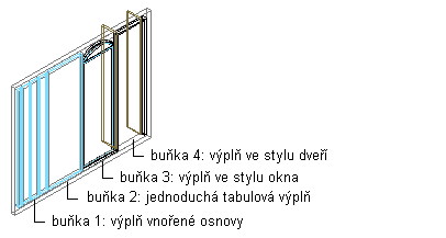 Můžete vytvořit nové definice prvků a pak tyto definice přiřadit v obvodovém plášti. Můžete například vytvořit vícenásobné definice výplní a pak přiřadit různé výplně určitým buňkám v osnově.