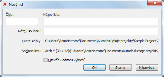 zadejte číslo. Pokud jste v nastavení projektu vybrali předponu projektu, bude předpona vložena před číslo listu v názvu souboru. |