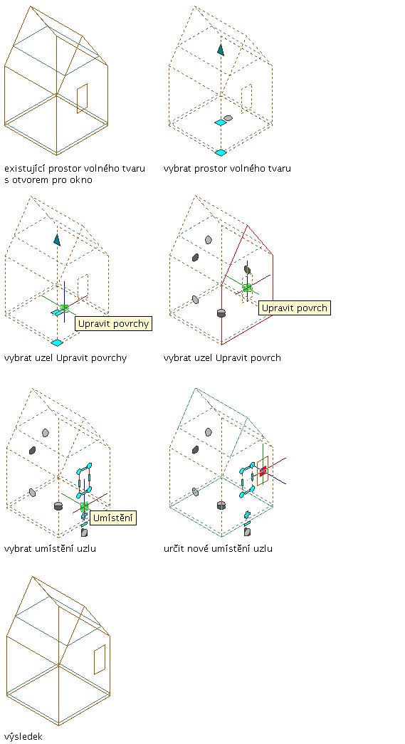 Poznámka: Přemístění otvoruna jiný povrch nebo mimo prostor bude mít za následek, že plocha otvoru se bude vykazovat jako nulová.
