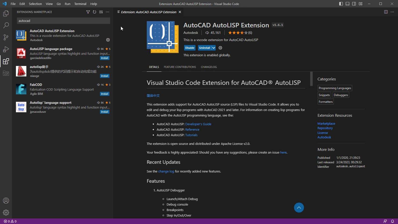 Learn how to install and configure the AutoCAD AutoLISP Extension for Visual Studio Code.