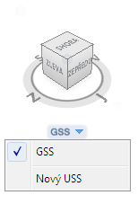 Nabídka USS umístěná pod nástrojem ViewCube zobrazuje název aktuálního USS v modelu. Z této nabídky lze obnovit jeden z pojmenovaných USS uložených v modelu, přepnout do GSS nebo definovat nový USS. Položka GSS v nabídce přepne souřadnicový systém z aktuálního USS na GSS. Položka Nový USS otočí aktuální USS podle jednoho, dvou nebo tří bodů a definuje nový USS. Když kliknete na položku Nový USS, definujete nový USS s výchozím názvem Bez názvu. Chcete-li nově definovaný systém USS uložit pod novým názvem, použijte možnost Pojmenovaný v příkazu USS.