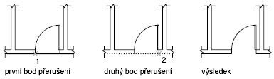 Přerušení lze vytvořit ve většině geometrických objektů kromě: bloků, kót, multičar a oblastí. Alternativně je možné použít u těchto typů objektů příkaz ROZLOŽ a vytvořit přerušení v oddělené geometrii.