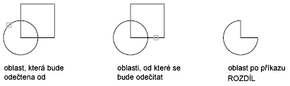Poznámka: Použití příkazu ROZDÍL není vhodné u 3D povrchů. Místo toho použijte příkaz OŘEŽPOVRCH.