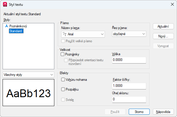 Použije změny stylu provedené v dialogovém okně na aktuální styl a na text aktuálního stylu ve výkresu.