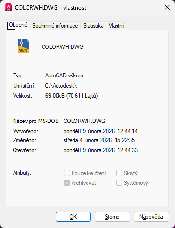 Zobrazí informace o souboru výkresu jen pro čtení, které jsou odvozeny z operačního systému.