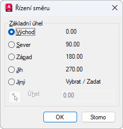 Nastavuje orientaci nulového úhlu. Následující volby ovlivňují zadávání úhlů, formát zobrazení a zadávání v polárních, válcových a sférických souřadnicích.
