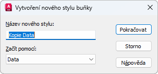 Udává název pro nový styl buňky a udává existující styl buňky, na kterém bude nový styl buňky založen.