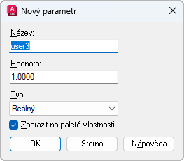 Slouží k vytvoření a definování nového uživatelského parametru pro přidání do tabulky vlastností bloku.