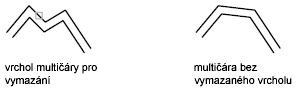 Většinu běžných editačních příkazů lze na multičáry použít, kromě příkazů