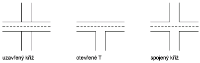 Multičáry se mohou protínat křížově nebo ve tvaru T a křížení nebo tvary T mohou být uzavřené, otevřené nebo sloučené.