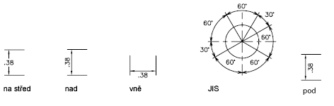 Řídí orientaci kótovacího textu (horizontální nebo zarovnaný), jestli je uvnitř nebo vně vynášecích čar. (Systémové proměnné DIMTIH a DIMTOH)