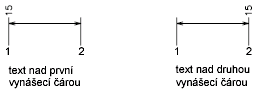Text je umístěn mezi vynášecí čáry pouze tehdy, pokud jsou výsledné segmenty alespoň tak dlouhé jako textová mezera. Text nad nebo pod kótovací čárou je umístěn uvnitř pouze tehdy, pokud šipky, kótovací text a okraj ponechají dostatek místa pro textovou mezeru. (Systémová proměnná DIMGAP)