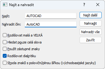 Dialog Najít a nahradit – MTEXT