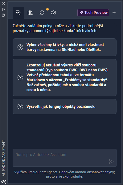Zobrazí paletu Autodesk Assistant, která poskytuje nápovědu s podporou AI.