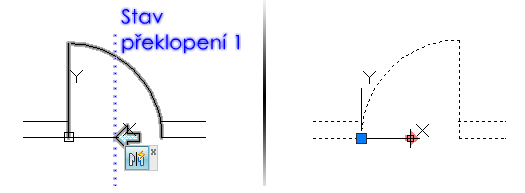 Překlopení zrcadlí vybrané objekty v referenci dynamického bloku podle určené přímky zrcadlení.