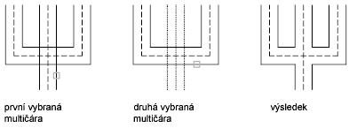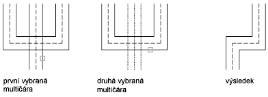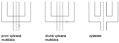 Vytvoří rohové spojení mezi dvěma multičárami. Multičáry budou ořezány nebo prodlouženy do svého průsečíku.