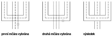 Vytvoří otevřené křížení mezi dvěma multičárami. Přerušení jsou vložena do všech prvků první multičáry a pouze do venkovních prvků druhé multičáry.